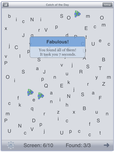 This app is based on the Catch of the Day game from LocuTour’s Attention and Memory: Volume I CD.