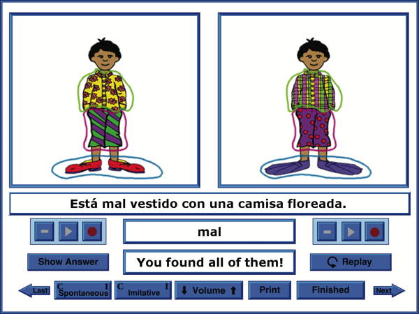 The Spanish Language Combo lets monolingual Speech-Language Pathologists provide phonological treatment for their bilingual clients. Spanish Phonology: Intervention is a practical resource for the Speech-Language Pathologist working with bilingual or monolingual Spanish speaking children with phonological delay. Palabras Básicas has the basic words learned in early language development. Many photos have a white background to make it easy for children to distinguish figure/ground. Es Todo allows clients with word finding deficits to practice word finding skills using real photographs of food, household objects, animals and other objects that we see everyday.